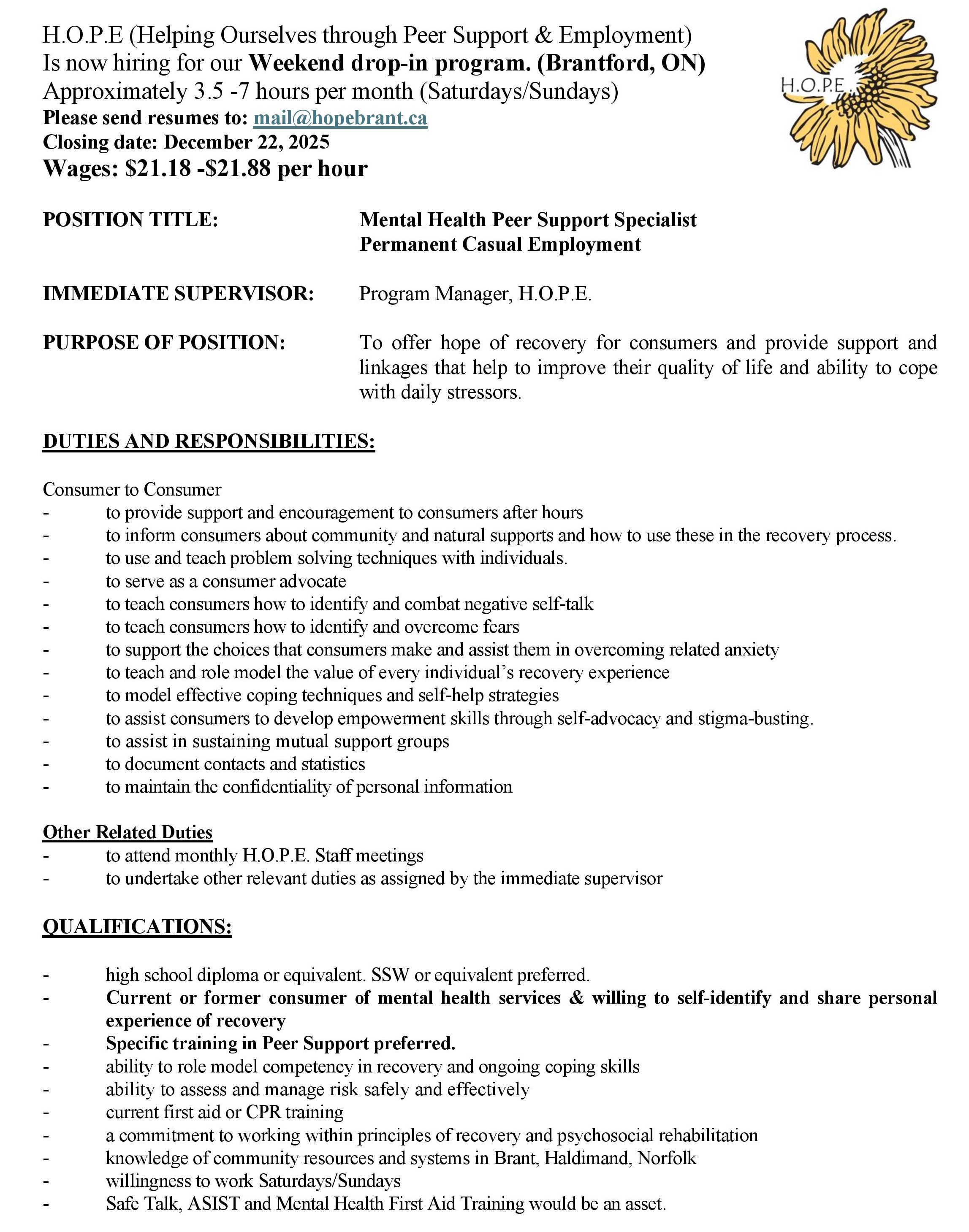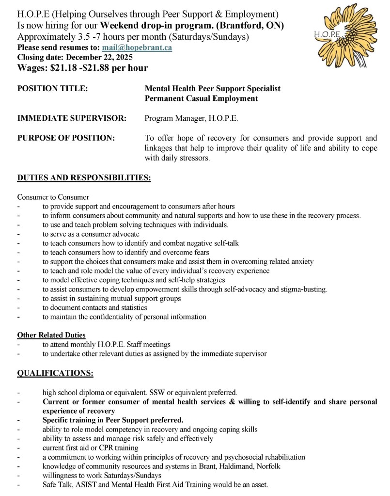 Work is important. Too often people with mental health problems are left out of the workforce, not because they don’t want to work or are not able to, but often because stigma and discrimination and a loss in self confidence gets in the way. Work provides us with a sense of purpose and meaning, it forms part of our social identity and is where we develop our friendships and supports. Work also gives us the resources we need to participate in our community. Work also helps us with our recovery from mental illness.